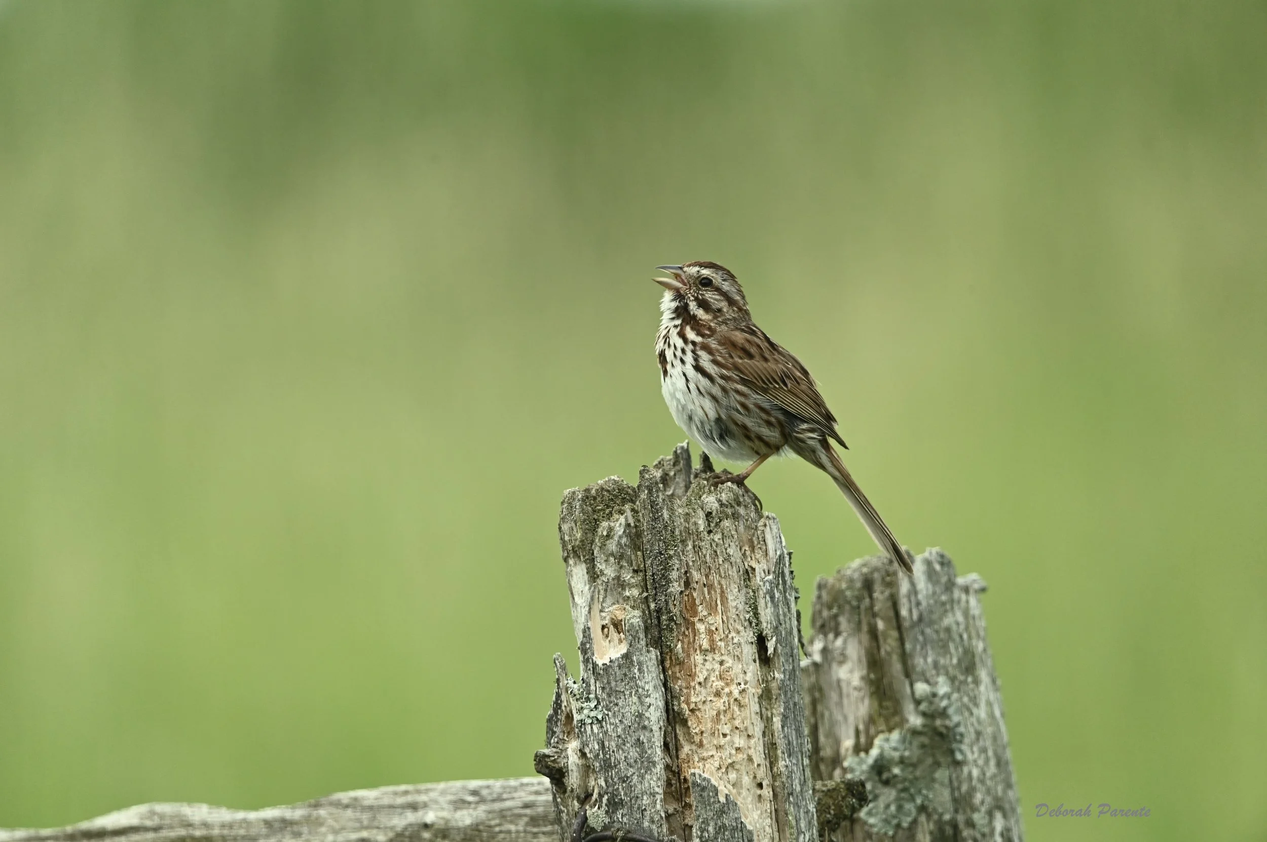 Everyone surely recognizes the Song Sparrow. Though I see many of them in my backyard, I photographed this particular one while walking in Shelburne Farms. First, I heard its sweet song, then spotted it resting on a fence post singing its little heart out.